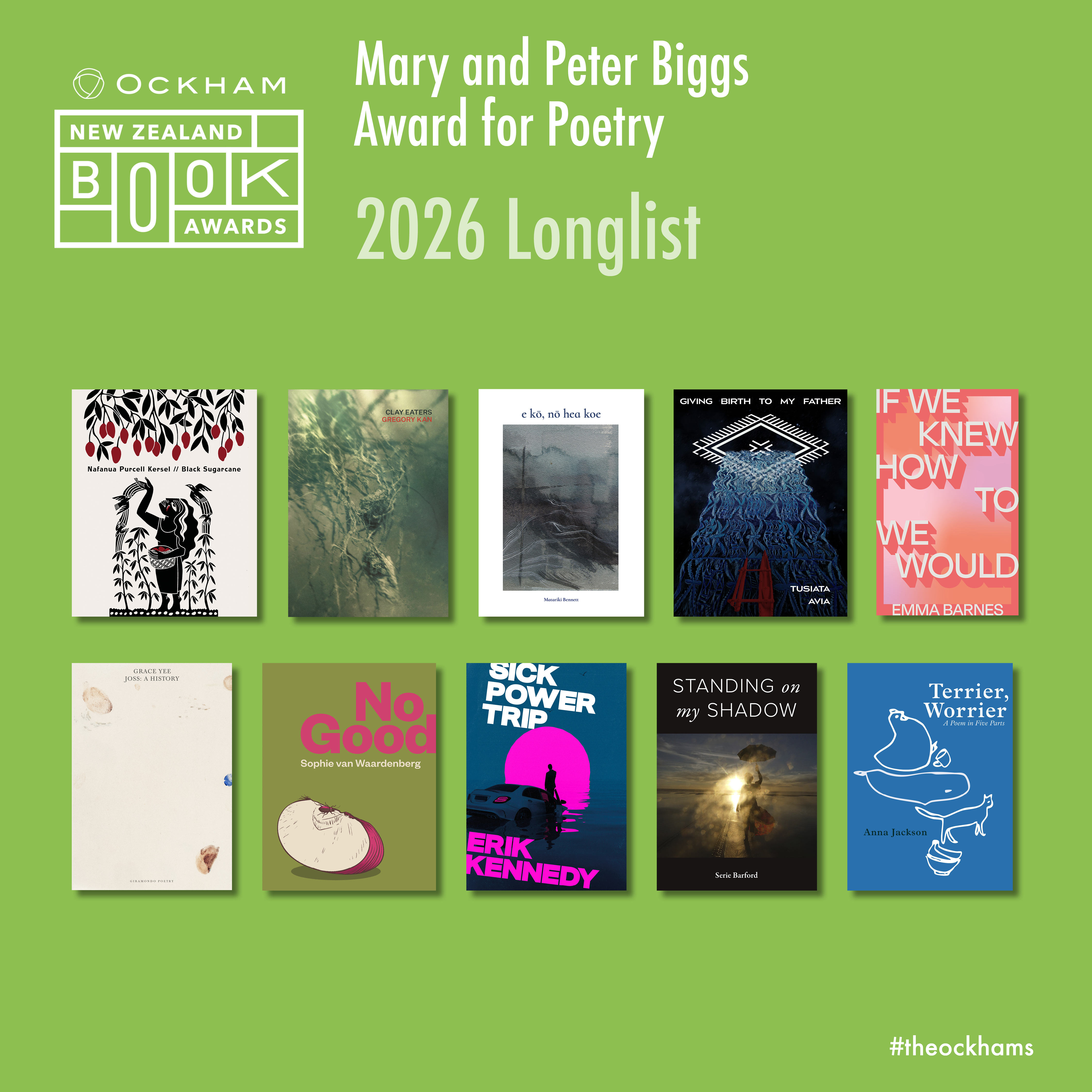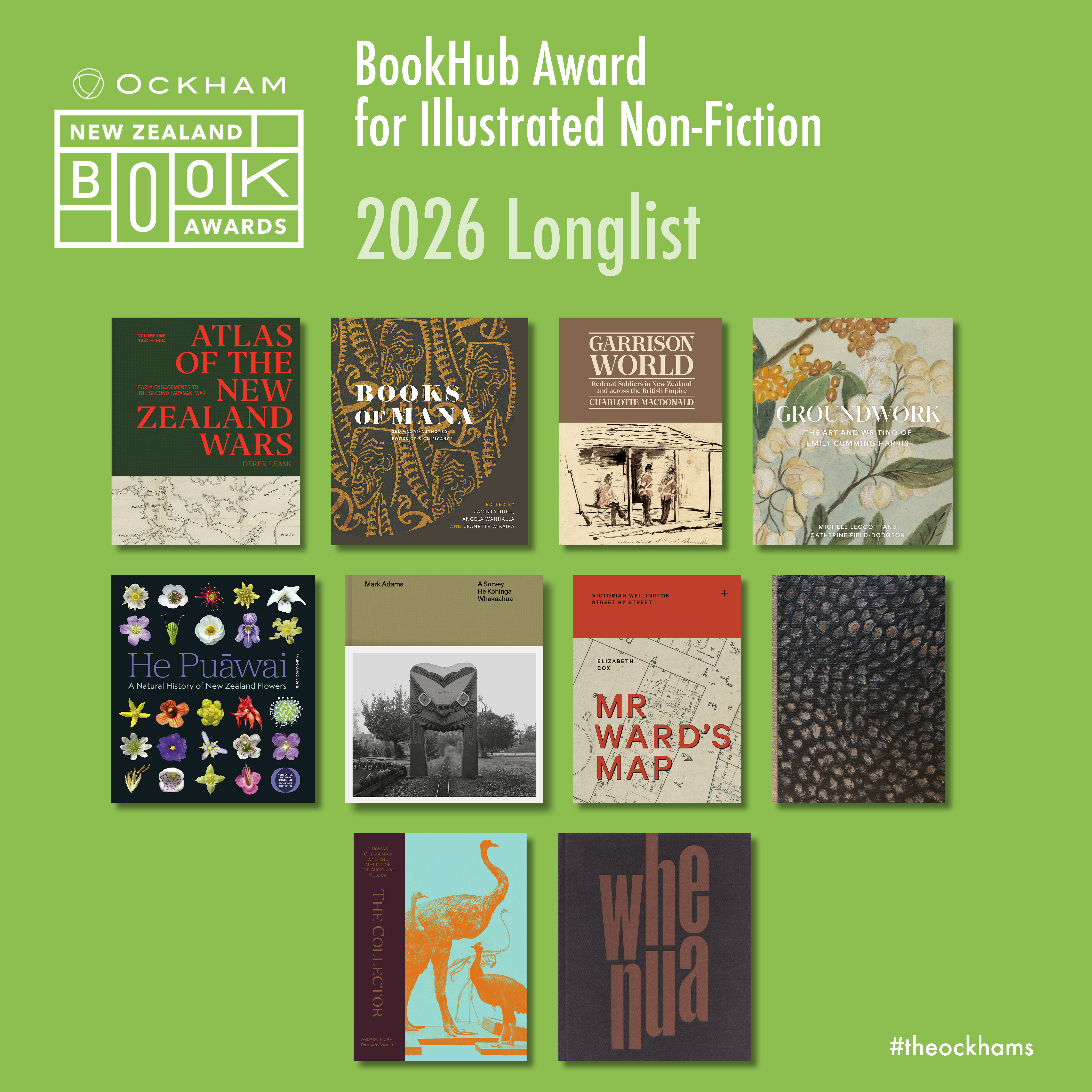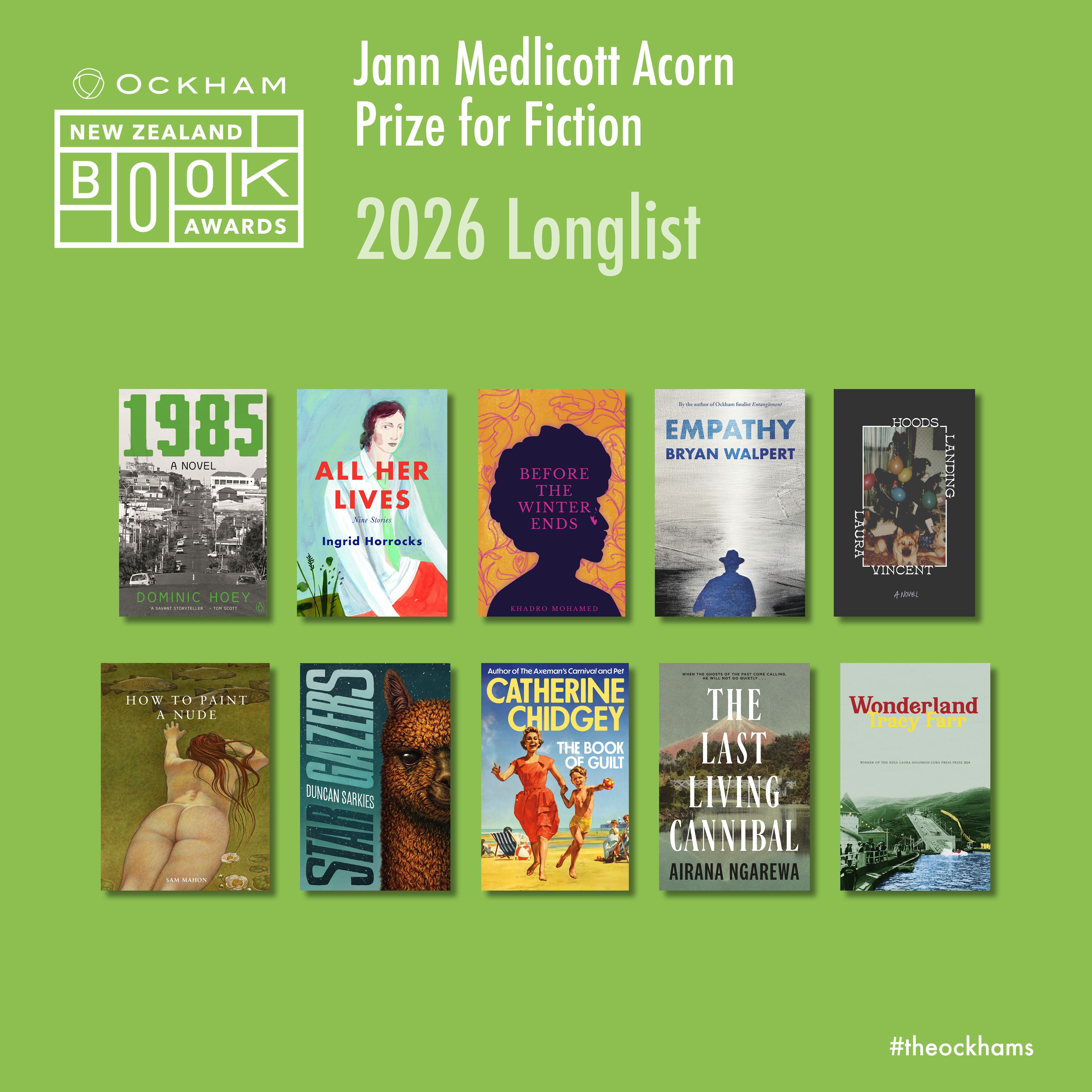 You are welcome to use the downloadable resources below to create online content about the 2026 Ockham New Zealand Book Awards longlisted titles.