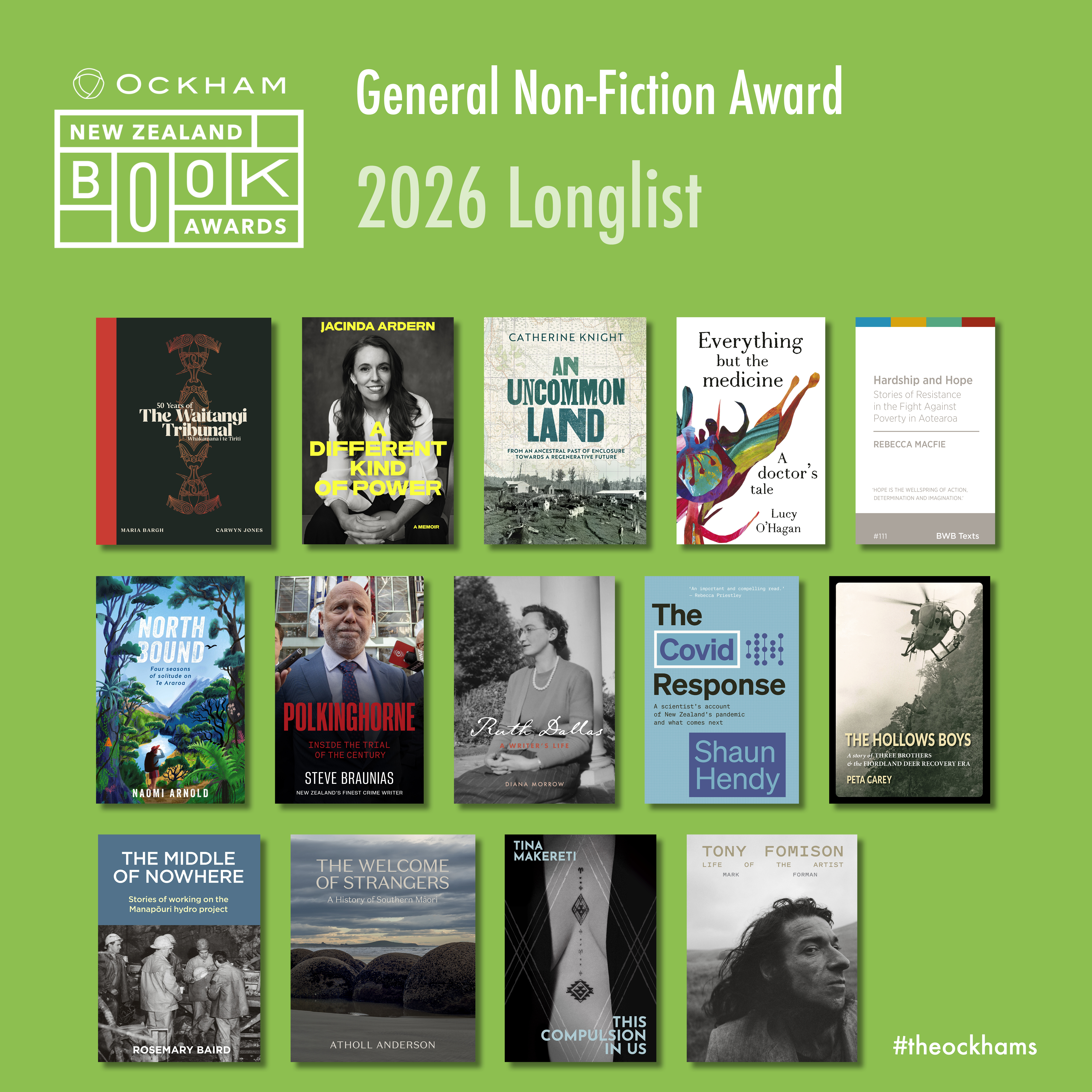You are welcome to download the print-resolution resources below to promote the 2026 Ockham New Zealand Book Awards longlisted titles in your community.